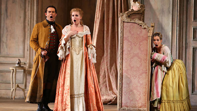 Les Noces de Figaro ! Le premier des trois opéras que Mozart écrivit avec Da Ponte. Le livret est tiré de la pièce de Beaumarchais, la Folle Journée, ou le Mariage de Figaro, qui, parce qu’elle mettait en scène un valet qui se révoltait contre son maître, fut interdite par la censure pendant plusieurs années. En Autriche, la représentation de la pièce en allemand avait aussi été interdite par l’empereur Joseph II. C’est en éliminant les traits de satire politique trop saillants que Mozart et son librettiste obtinrent des autorités la permission d’en faire un opéra. Même s’ils sont atténués, les conflits de classes n’en sont pas moins présents.