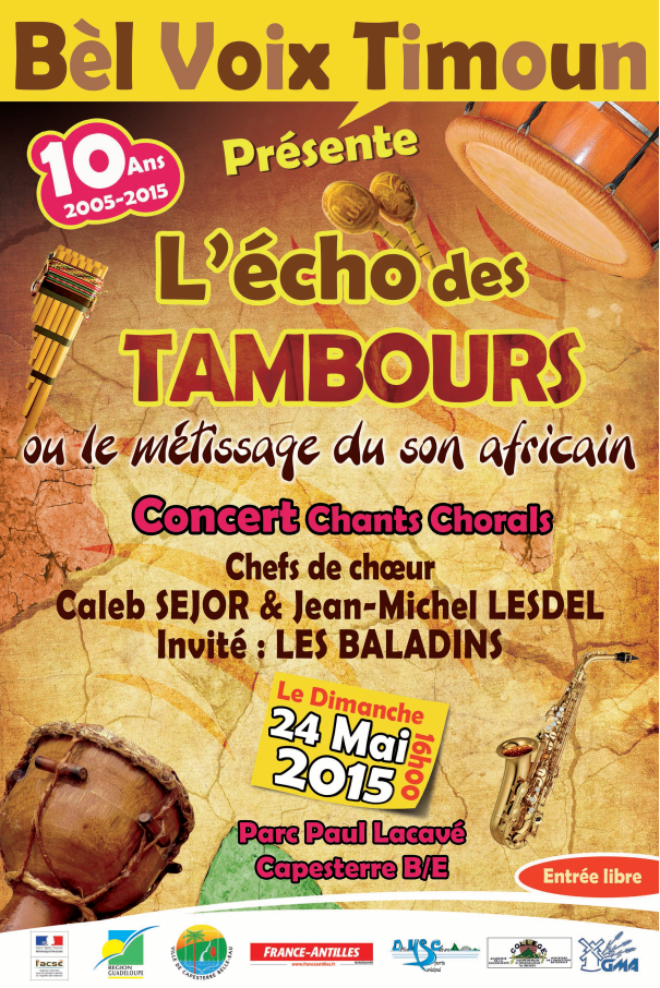 Bèl Voix Timoun en concert à l’occasion de ses 10 ans ! JEAN-CLAUDE HALLEY Non classé 14 Mai 2015 1 Minute Bonjour à tous, Bel Voix Timoun fête ses 10 ans d’existence…déjà Venez nombreux applaudir ce choeur d’enfants, le dimanche 24 mai 2015 à 16h au Parc Paul Lacavé à Capesterre Belle Eau Partager : Cliquer pour partager sur X(ouvre dans une nouvelle fenêtre) X Cliquez pour partager sur Facebook(ouvre dans une nouvelle fenêtre) Facebook J’aime chargement… Similaire Publié par JEAN-CLAUDE HALLEY Retraité, tout un programme Voir tous les articles par JEAN-CLAUDE HALLEY Publié 14 Mai 2015