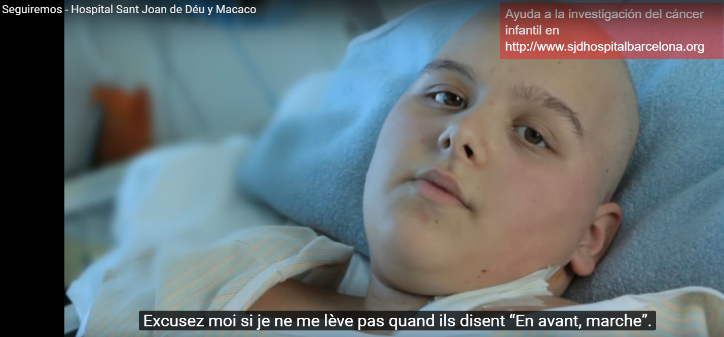 Il s’agit d’une vidéo qui a été faite par le chanteur Macaco avec les travailleurs et les patients du 8e étage (Oncologie) de l’Hôpital pour enfants, San Juan de Dios à Barcelone afin de récolter des fonds pour la recherche sur le cancer.