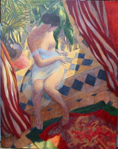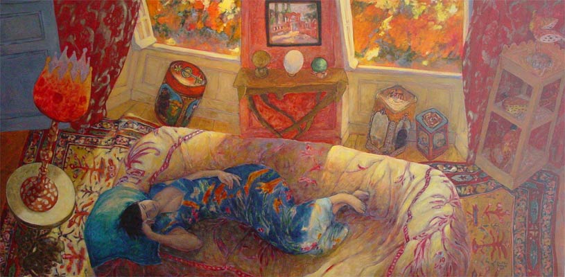 Loin de toute théorie, l’artiste perpétue la tradition d’une peinture épicurienne, décorative et silencieuse. Pour isoler un peu de temps à l’état pur. Devant la toile, Do Fournier rassemble ses souvenirs, concentre sa mémoire, se rappelle des parfums. Comme si son œuvre ne pouvait capter sa force que par l’éloignement de leur source. Comme ces amoureux fous qui ne tremblent jamais autant que lorsque l’objet de leur idylle est absent. Dans leurs peignoirs chatoyants, parfois enturbannées, ses femmes oisives et rêveuses, ouvertes et pourtant si secrètes, figées dans leur éternelle jeunesse, prennent ainsi l’allure d’odalisques de Matisse ou de quelque princesse persane alanguie dans leur voluptueux abandon.