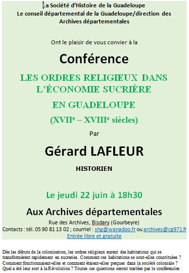 LES ORDRES RELIGIEUX DANS L’ÉCONOMIE SUCRIÈRE EN GUADELOUPE (XVIIe – XVIIIe siècles) JEAN-CLAUDE HALLEY Actualité, Conférence, Guadeloupe 8 juin 2017 1 Minute Partager : Partager sur X(ouvre dans une nouvelle fenêtre) X Partager sur Facebook(ouvre dans une nouvelle fenêtre) Facebook J’aime chargement… Similaire Publié par JEAN-CLAUDE HALLEY Retraité, tout un programme Voir tous les articles par JEAN-CLAUDE HALLEY Publié 8 juin 2017