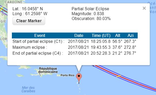 Horaire du phénomène pour la Guadeloupe