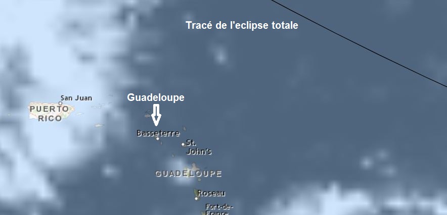 Le tracé de l’éclipse total de concerne pas la Guadeloupe qui ne bénéficiera que d’une éclipse partielle. Attention les yeux.