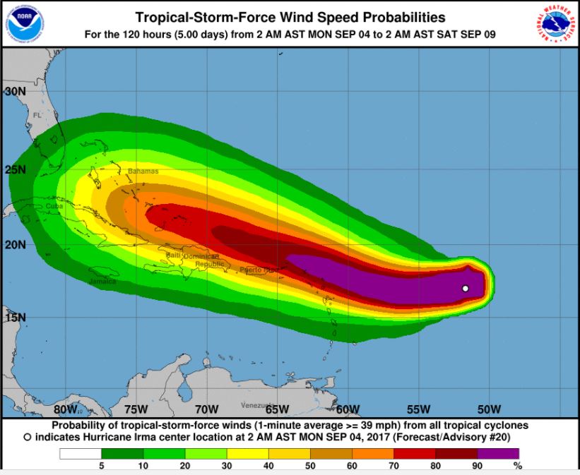 | 36H 05/1800Z 17.0N 58.6W 115 KT 130 MPH | 427 |