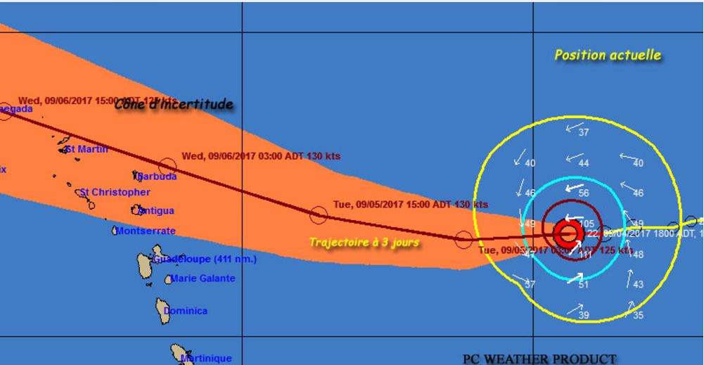 Irma en approche de la Guadeloupe le 04 09 17 h JEAN-CLAUDE HALLEY Actualité, Cyclone, Cyndiniques 5 septembre 2017 1 Minute Irma est à 800 km de la Guadeloupe 150 Km distance minimale entre Irma et la Guadeloupe dans la nuit du 04 au 05 09 Partager : Partager sur X(ouvre dans une nouvelle fenêtre) X Partager sur Facebook(ouvre dans une nouvelle fenêtre) Facebook J’aime chargement… Similaire Publié par JEAN-CLAUDE HALLEY Retraité, tout un programme Voir tous les articles par JEAN-CLAUDE HALLEY Publié 5 septembre 2017