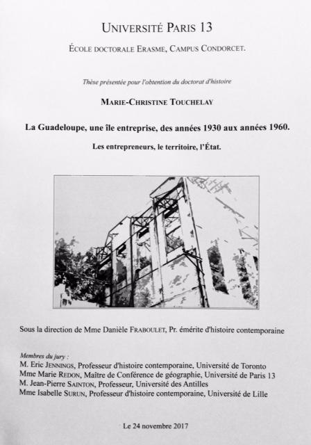 Paris XIII, thèse intitulée : « La Guadeloupe, une île entreprise des