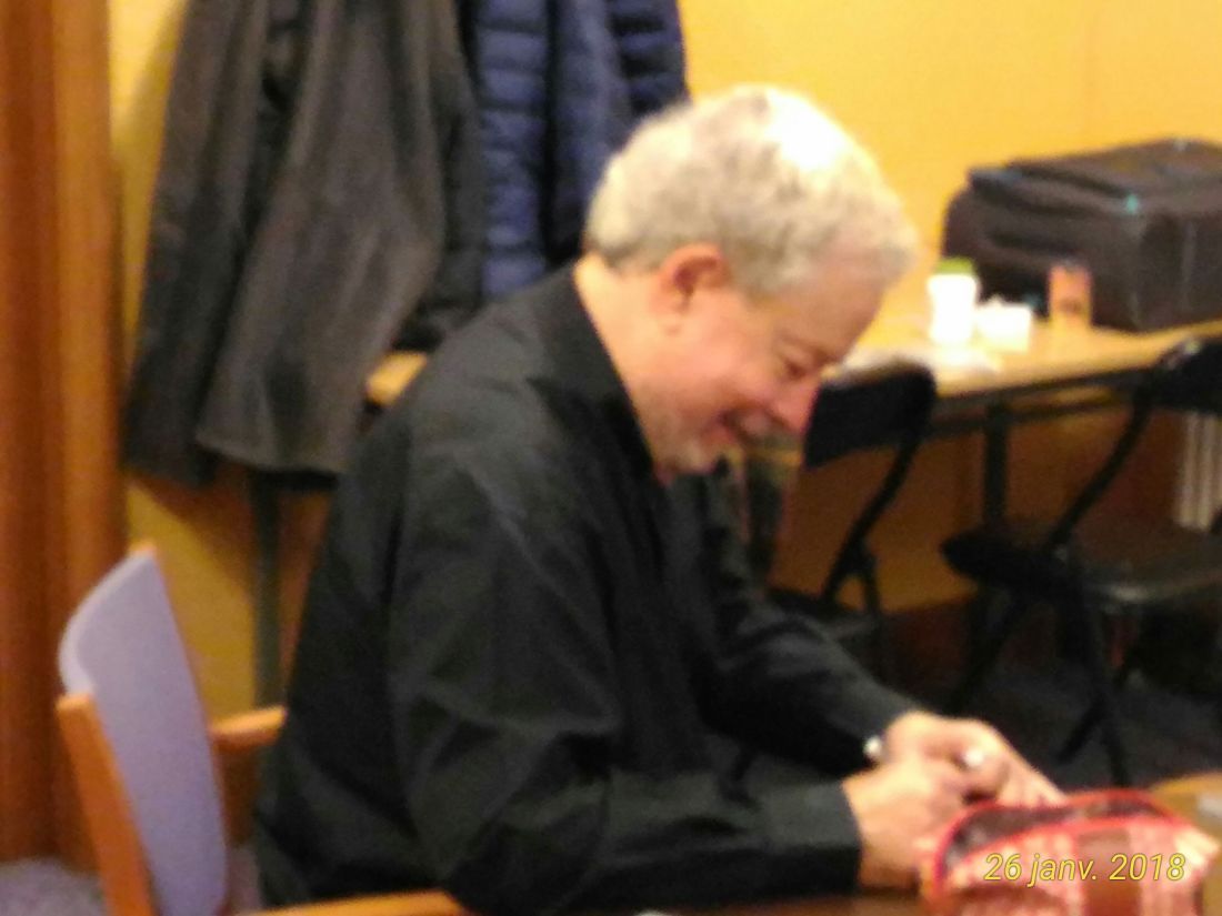 Un bien agréable moment avec un FAN de Nelson… longue route vers Lyon, traversée du pays froid vous tempête de neige… Puis c’est la ville lumière non encore endormie… La Saône est grosse de milles eaux venues d’ailleurs… Le théâtre de Guignol, nous sommes bien à Lyon… Des petits bouchons à gauche et à droite et pour attendre nous choisissons un bar brésilien bruyant des chants accompagnant des lutteurs de capoeira… Deux bières plus tard nous reprenons le chemin vers la salle Molière du Palais de BONDY… nous traversons le quartier Saint-Paul… (une petite pensée pour Monsieur Paul) dans le 5ème arrondissement et arrivons sur le quai Bondy… La foule est déjà là… Un peu vieillot ce palais, style rococo, salle moyenne et sur la scène l’immense piano objet de tous nos désirs
