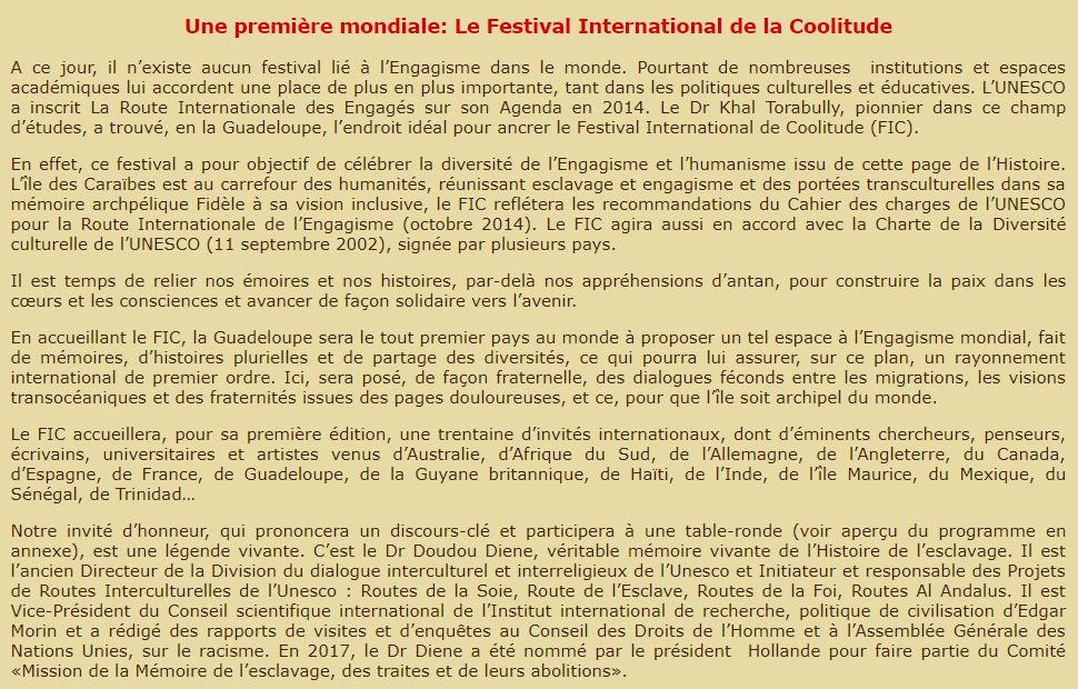 Festival International de la Coolitude 16-20 mai 2018 JEAN-CLAUDE HALLEY Actualité, Coolitude, Guadeloupe, Indiens 10 Mai 2018 1 Minute Dr Stéphanie Melyon-Reinette Partager : Cliquer pour partager sur X(ouvre dans une nouvelle fenêtre) X Cliquez pour partager sur Facebook(ouvre dans une nouvelle fenêtre) Facebook J’aime chargement… Similaire Publié par JEAN-CLAUDE HALLEY Retraité, tout un programme Voir tous les articles par JEAN-CLAUDE HALLEY Publié 10 Mai 2018